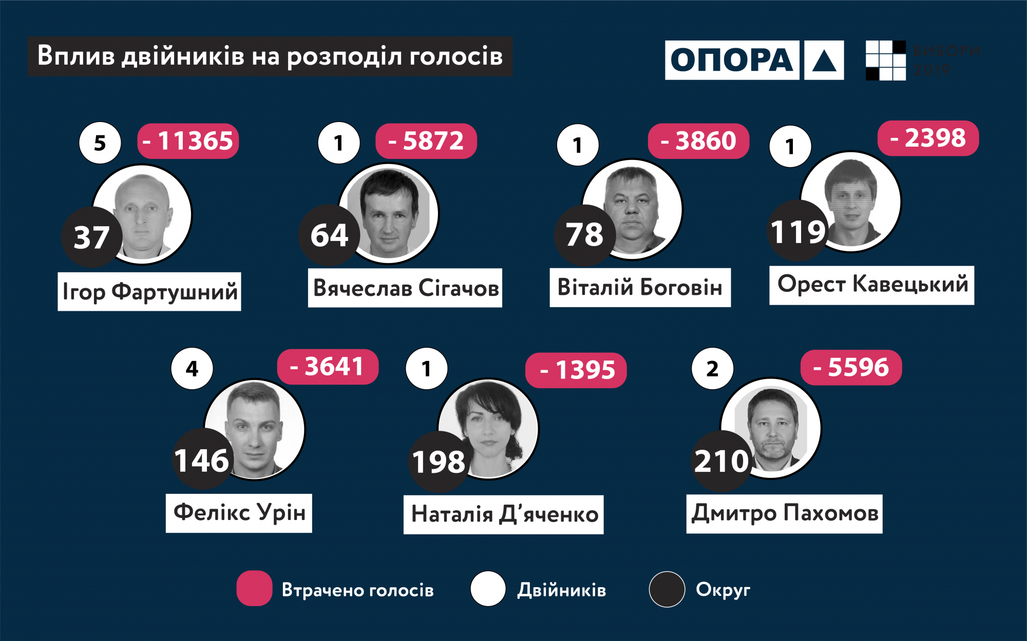 Из-за так называемые "двойники" на внеочередных выборах народных депутатов, негативно повлияли на волеизъявление граждан в семи округах, в частности помешав победить шести кандидатам от партии "Слуга народа".