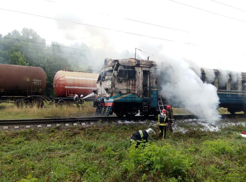 Утром 31 июля в Службу спасения поступило сообщение о том, что возле деревни Тартак Жмеринского района горит один из вагонов (хвостовой, без пассажиров) электрички "Казатин-Жмеринка".