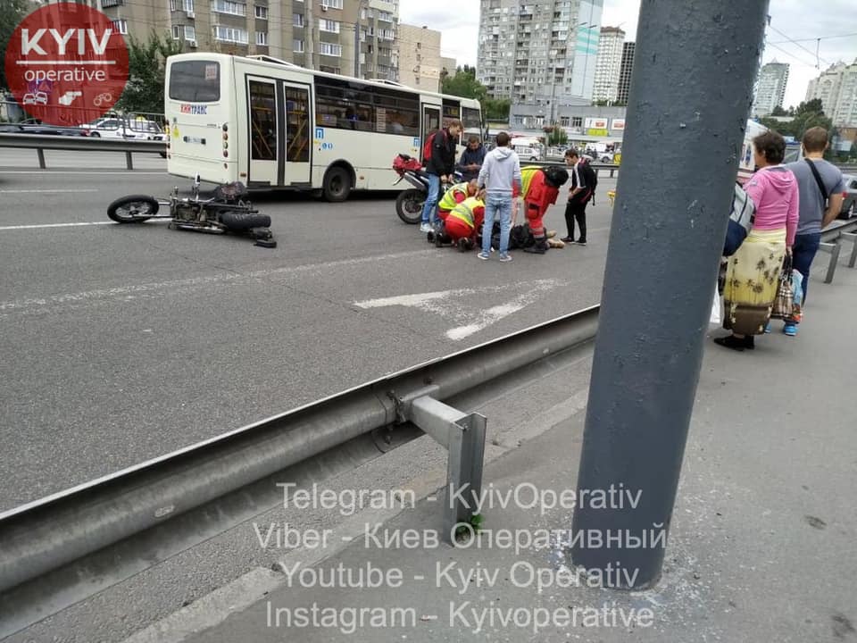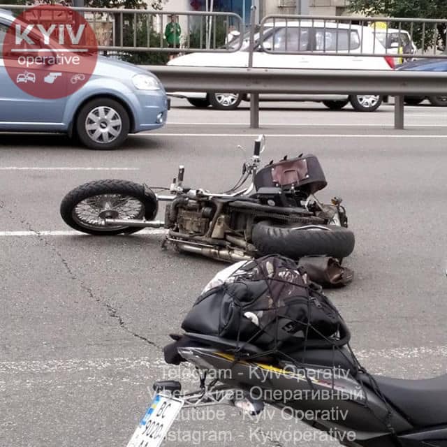 В Киеве на проспекте Победы, возле станции метро Святошино, водитель минивэна въехал в мотоциклиста.