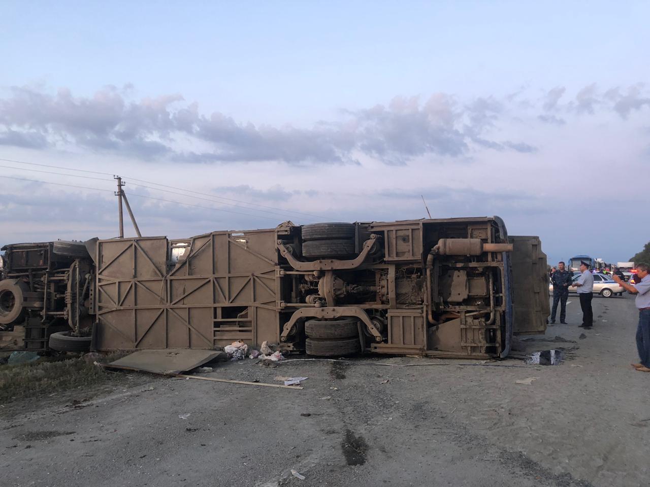 В автобусе были 23 человека. "Сейчас известно о пяти погибших, в том числе водитель автобуса. Количество раненых устанавливается, предварительно — 14 пассажиров. Они доставлены в районную больницу", — говорится в сообщении ГИБДД.
