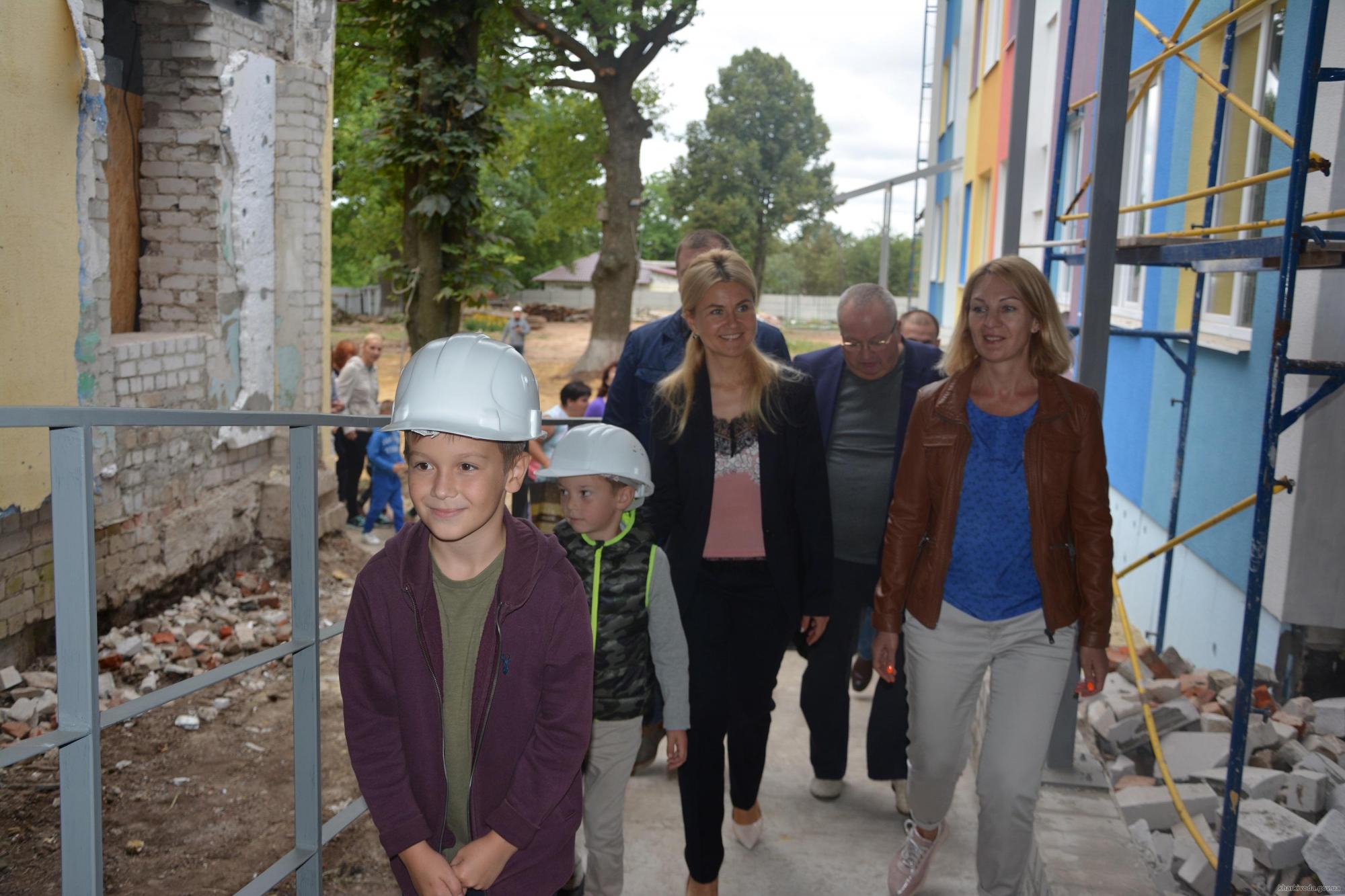 Во время рабочей поездки в Харьковский район глава ХОГА вместе с жителями города Южный проверила ход строительства нового корпуса местного детского сада.