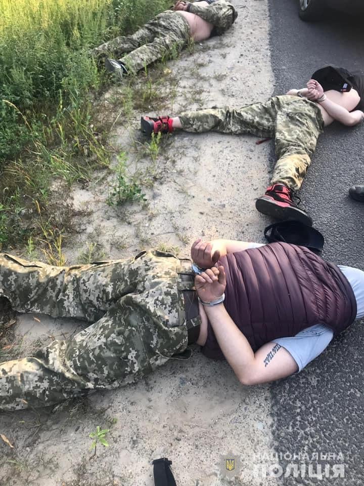 На место происшествия оперативно прибыли спецназовцы и задержали злоумышленников на месте преступления в порядке ст. 208 УПК Украины. Сейчас они находятся в изоляторе временного содержания. У нападающих изъяли оружие, раскладной металлический нож, кастет с электрошокером, права, баллончик, мобильные телефоны, банковские карты, личные документы, а также три автомобиля.
