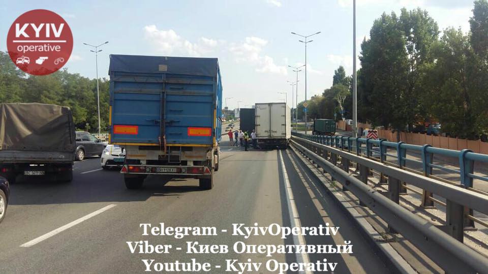 На Столичном шоссе на путепроводе, вблизи проспекта Науки, произошло ДТП с участием трех грузовиков: два Mersedes-Benz и DAF. Об этом сообщает "Киев Оперативный".