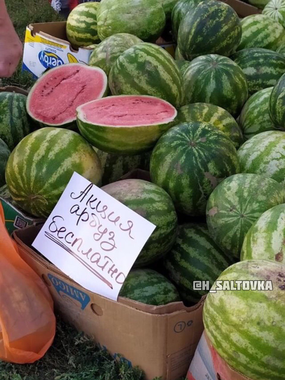 Фотофакт: В Харькове бесплатно раздают арбузы 13 августа 2019 07:48 Аттракцион невиданной щедрости. В Харькове у метро "Студенческая" бесплатно раздают арбузы. Фото публикует Telegram-канал @h_saltovka.