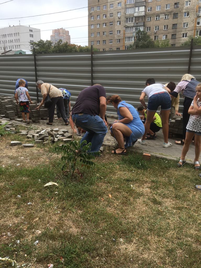 После сноса, жители микрорайона начали восстанавливать тротуарную плитку, которую накануне уже начали демонтировать.
