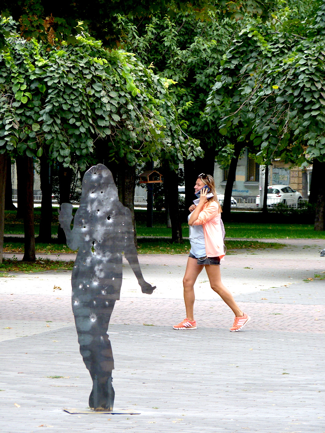 Фігури персонажів, серед яких бабуся, дитина, дівчина, фотограф, музикант-гітарист, діловий чоловік розміщені просто неба, у сквері Героїв та на набережній обласного центру. Вони зображують звичайних людей — мешканців опалених війною українських міст.