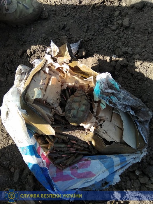 Схрон був облаштований в одному із селищ Новоайдарського району. Співробітники СБУ залучені до операції Об’єднаних сил вилучили автомат Калашникова АК-74, два підствольних гранатомети, три гранати Ф-1, сім гранат РГД-5, сорок пострілів до ВОГ-25, 1220 патронів калібру 5.45 мм, глушник до автомата Калашникова. Арсенал направлено на експертизу.