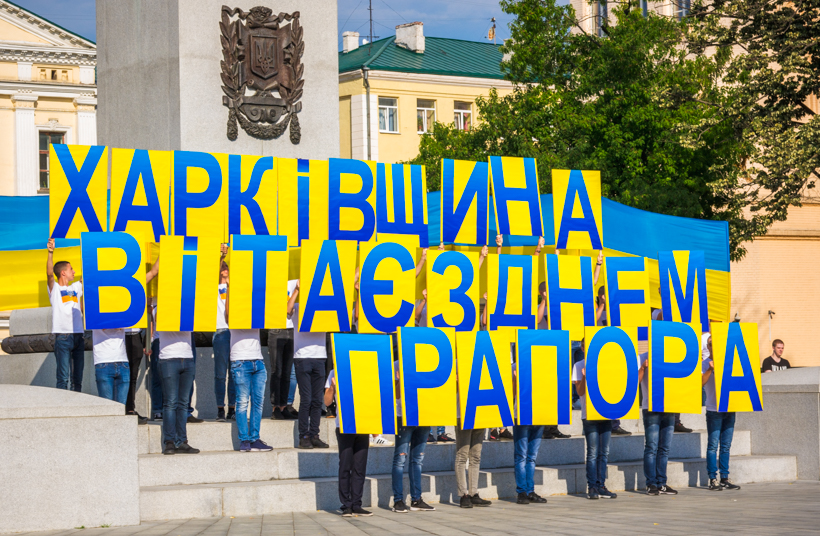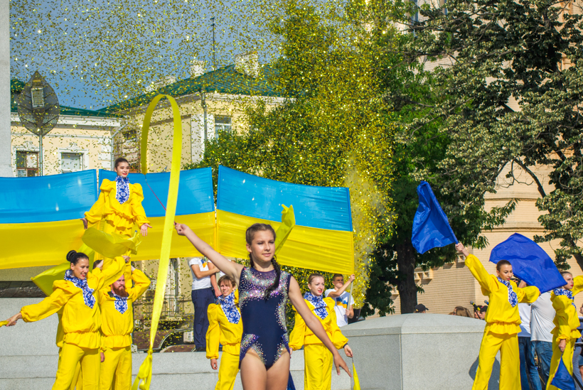 К желто-голубым поздравлениям, которые звучат сегодня в каждом городе нашей страны, присоединился Харьков. Празднование ко Дню Государственного флага начали на площади Конституции, здесь с самого утра больше полсотни людей репетировали перед праздничным флэшмобом. По словам заместителя председателя ХОГА Анатолия Бабичева, готовились к празднику долго, сначала молодежь придумала идею, ее обработали и несколько месяцев уже совместно с профессиональными режиссерами отрабатывали всю концепцию и все мероприятие.