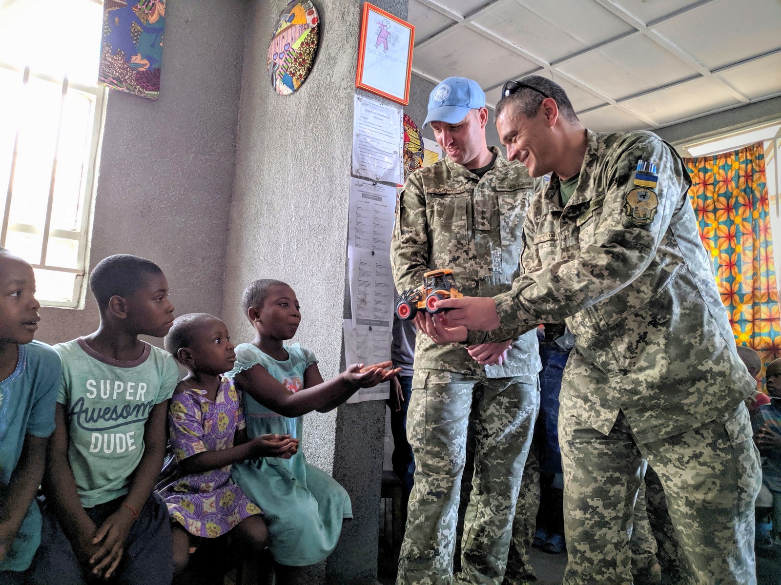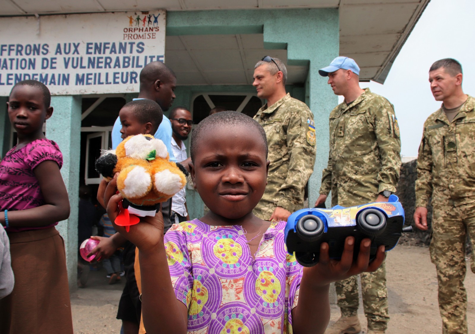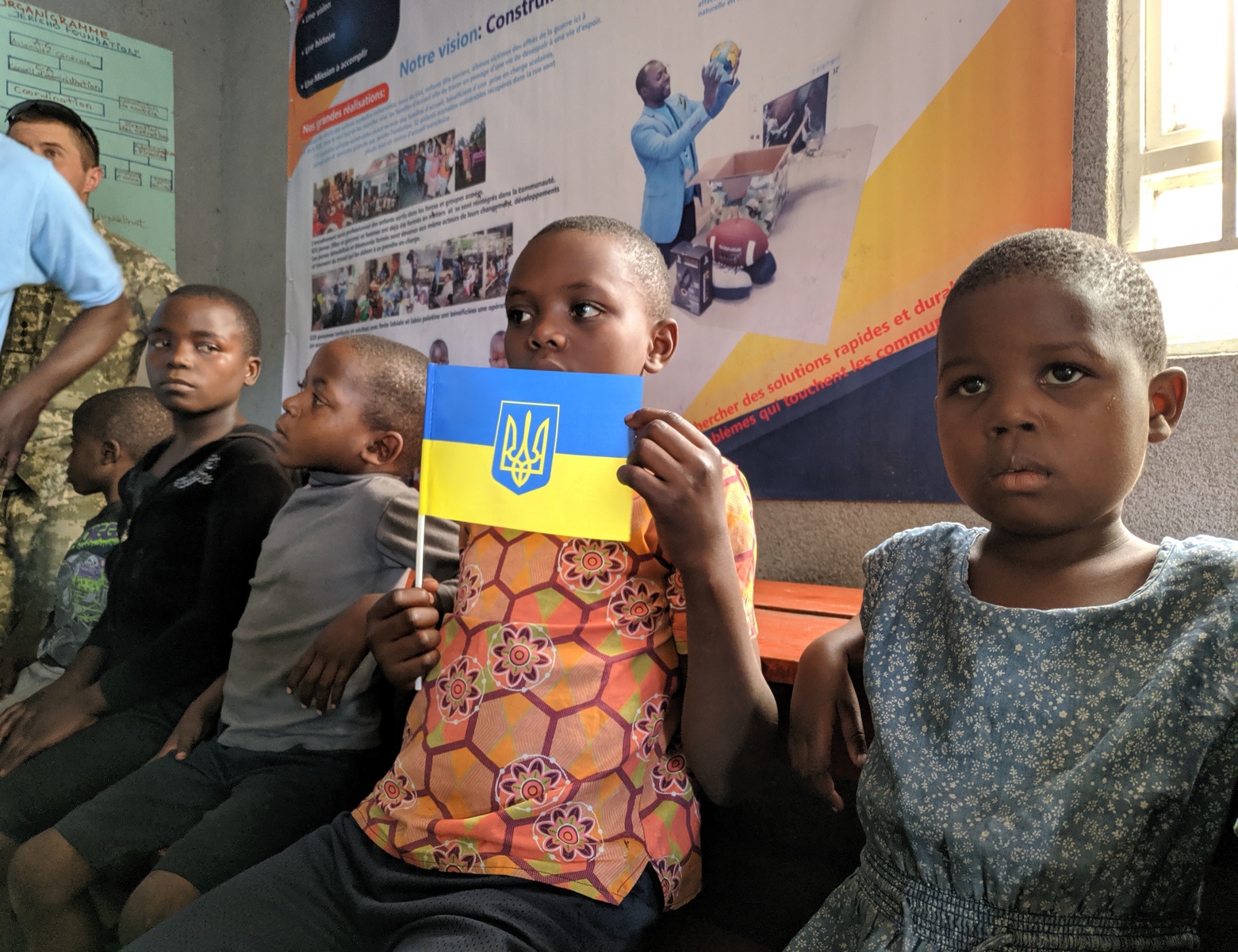 У День Державного Прапора України військовослужбовці 18 окремого вертолітного загону, який виконує завдання Місії ООН зі стабілізації у ДР Конго, в черговий раз завітали з подарунками до дитячого будинку у місті Гома.