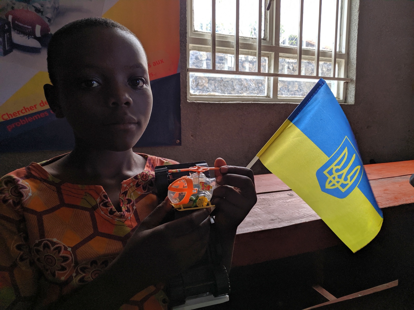 Також офіцер зазначив, що усі іграшки були зібрані та передані до ДР Конго дружинами військовослужбовців українського вертолітного загону, які теж вирішили долучитися до благородної справи їхніх чоловіків. Він подякував всім, хто не залишився байдужим та приєднався до цієї доброї справи.