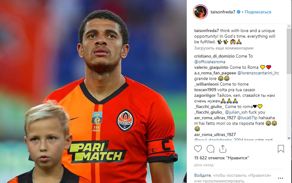 Бразильский капитан донецкого "Шахтера", полузащитник Тайсон через социальные сети обратился к руководству "оранжево-черных" с просьбой отпустить его в другой клуб.