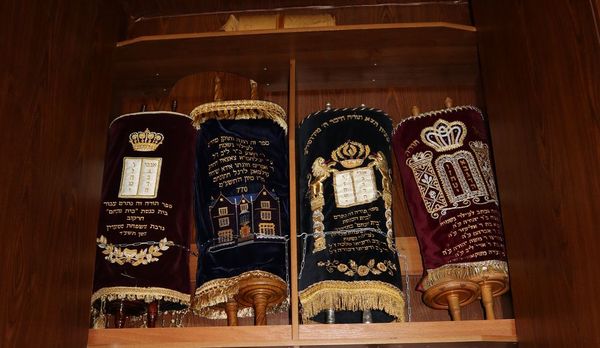 До этого их было пять. История шестого очень интересна. Он был заказан примерно сто пятьдесят лет назад состоятельным купцом, имя которого - ребе Хоне сын Лейба - выжжено на палочках, на которых намотан пергамент. Свиток писался примерно полгода в имении заказчика под Ригой в Курляндии (современная Латвия).