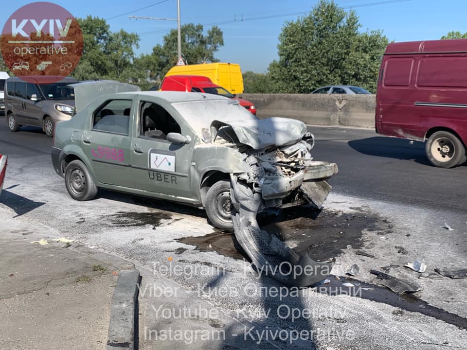 За Северным мостом, в сторону Троещины, произошло серьезное ДТП с участием таксиста UBER на автомобиле Renault и троллейбуса.