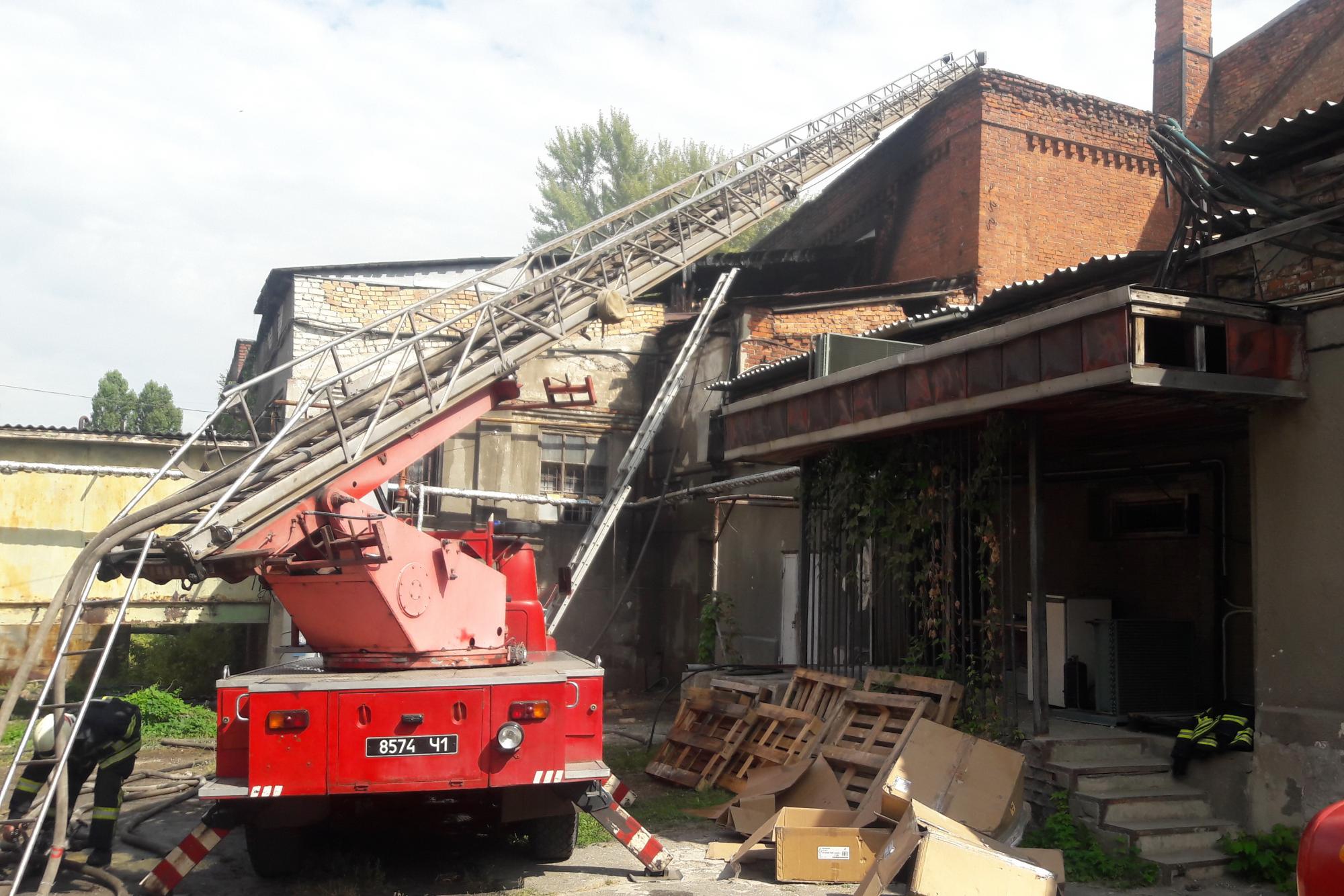 До місця події було направлено підрозділи ДСНС у складі 4-х відділень на автоцистернах та 1-го відділення на автодрабині. По прибуттю до місця пожежі було встановлено, що горить перекриття та дах прибудови недіючого одноповерхового складу тари. Площа пожежі склала 80м.кв. Існувала загроза розповсюдження полум’я на дах основного складу загальною площею 1500м.кв. Додатково до місця події було направлено 2-а відділення на автоцистернах та 1 відділення спецтехніки.