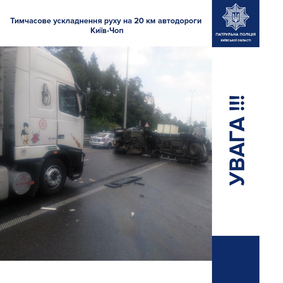 "В связи с дорожно-транспортным происшествием с участием пяти автомобилей временно затруднено движение на 20 км автодороги Киев-Чоп. Направление осложнения в движении – город Киев", - говорится в сообщении.