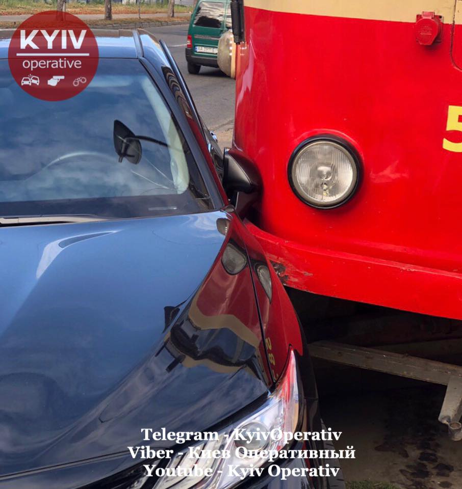 ДТП в Киеве стало причиной затора на ул. Дегтяревской: Toyota "слегка" подрезала трамвай. Об этом сообщается в группе "Киев Оперативный".
