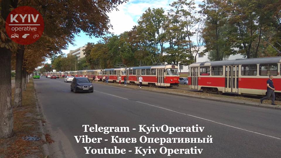 В Киеве парализовано движение трамваев по Дегтяревской (фото)