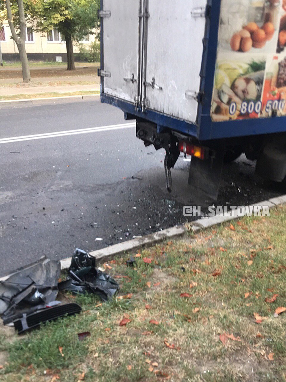 Как сообщают очевидцы в соцсетях, Volkswagen влетел в припаркованный грузовичок сети магазинов "Посад".