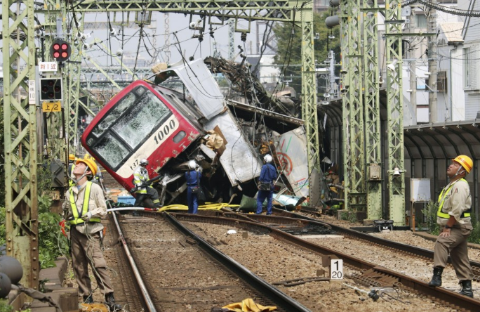 5 сентября в японском городе Йокогама пассажирский поезд столкнулся с грузовиком и сошел с рельс.