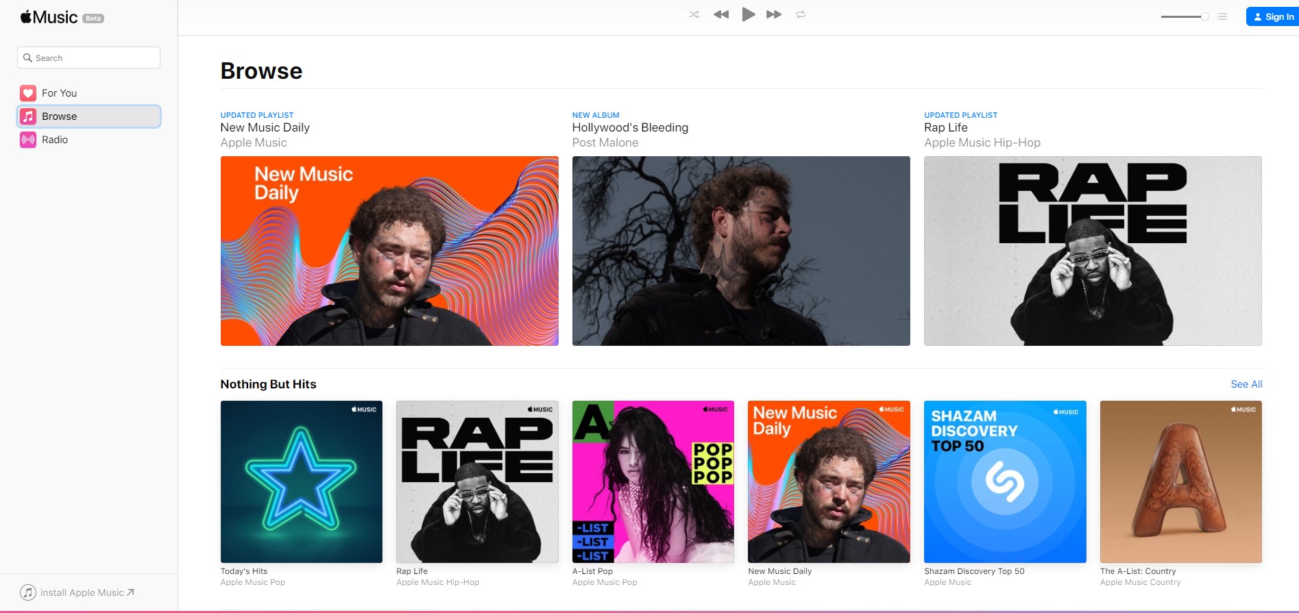 Веб-версия доступна по адресу beta.music.apple.com и пока работает в тестовом режиме. Дизайн выполнен в стиле приложения «Музыка», которое появится в macOS Catalina в сентябре этого года. Также поддерживается темная тема.