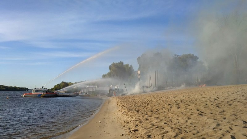 В столичном Гидропарке произошел пожар. По предварительной информации, горит клуб Bora Bora Beach Club. Густой черный дым видно с обоих берегов Днепра.