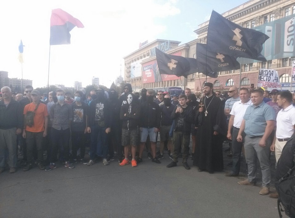 В противовес им на площадь пришла кучка смешных националистов под смертельно-черными флагами, но с "крестами".