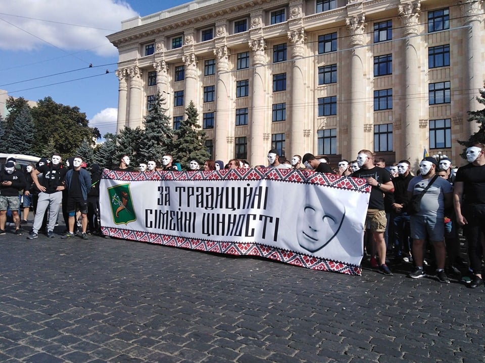 Те, кто выступают за "традиционные ценности" почему-то предпочли скрыть свои лица за "безликими" масками.