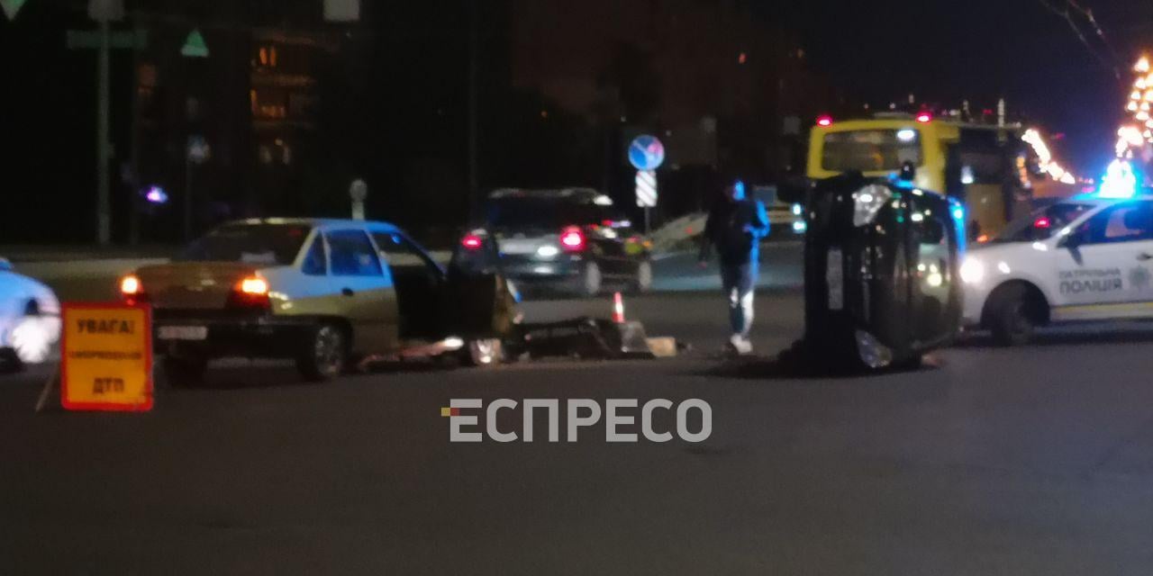 В Деснянском районе столицы в результате столкновения двух авто, одна из легковушек перевернулась