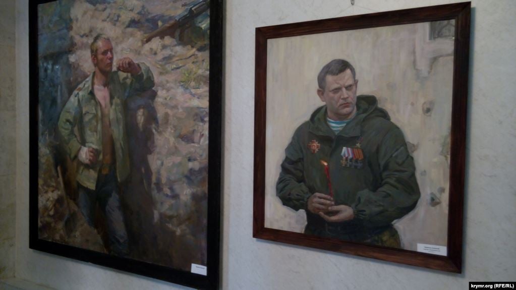 В Севастополе на территории аннексированного Россией Крыма во Дворце культуры рыбаков открыли выставку картин о боевых действиях на Донбассе и главарях боевиков так называемых "ДНР" и "ЛНР".