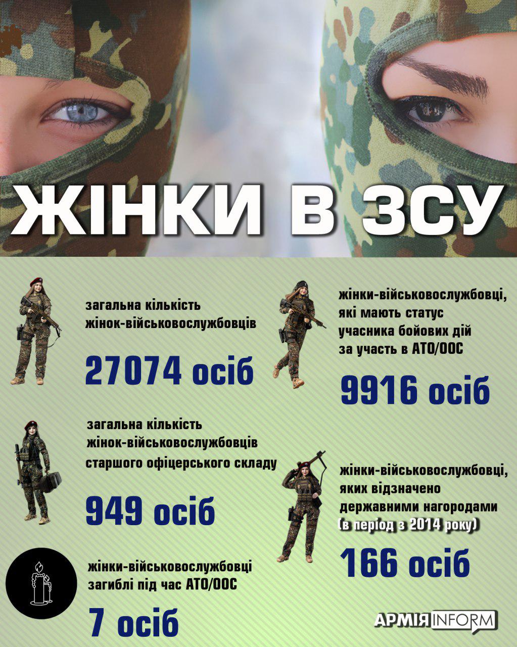 Таким образом, по данным Главного управления персонала Генерального штаба Вооруженных Сил Украины сейчас в армии 27 074 женщин-военнослужащих, из них 949 - старшие офицеры.