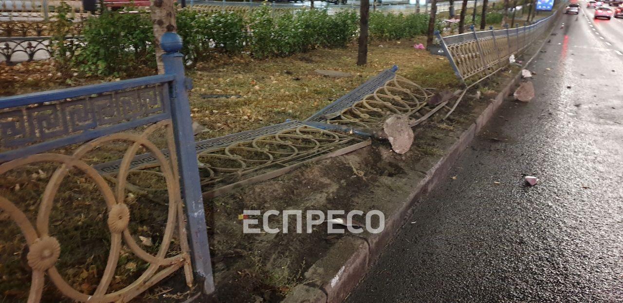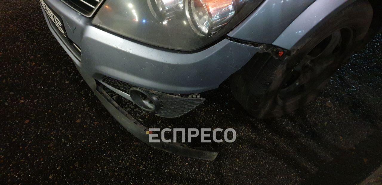 Легковушка Opel, который ехал сразу за "Славута", не успел вовремя отреагировать и наехал на части забора, которые вылетели на дорогу, из-за чего машина получила повреждения.