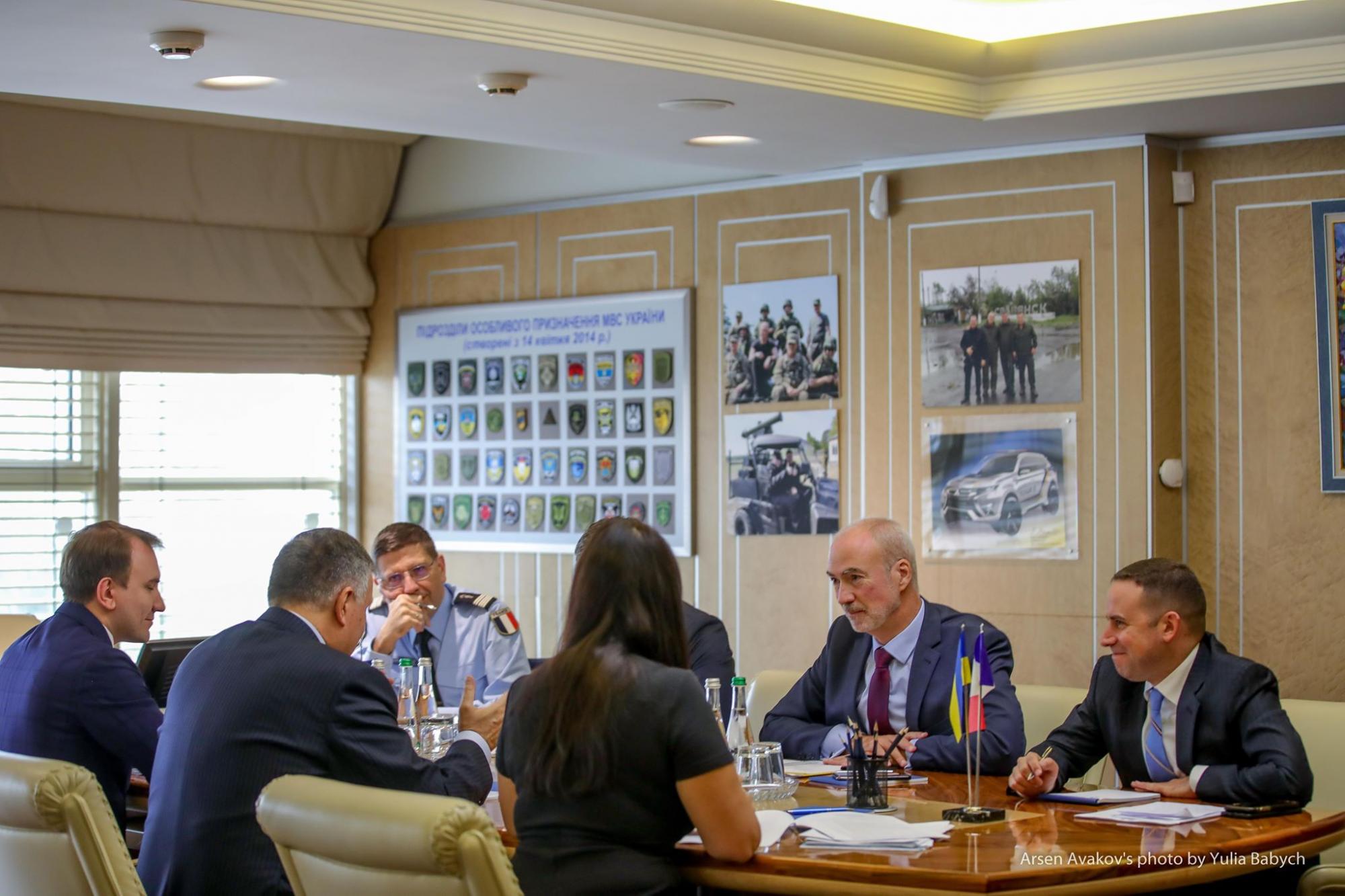 Головна вимога проекту – це локалізація виробництва патрульних катерів в Україні. Про це йшла мова сьогодні, 19 вересня, під час зустрічі міністра внутрішніх справ Арсена Авакова з Надзвичайним та Повноважним Послом Франції в Україні Етьєном де Понсеном, повідомляє прес-служба МВС.
