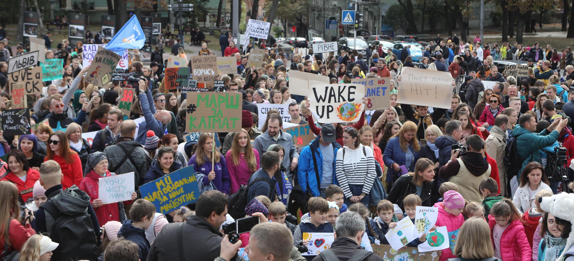 Как сообщает ЦЕНЗОР, участники акции скандировали лозунги: "Працюй, кохай, клімат захищай", "Вугілля, нафта, газ - обійдемось без вас", "Бюджет-2020 без брудних дотацій", "Зеленому місту - зелений транспорт", "Ні одноразовому пластику" и другие.