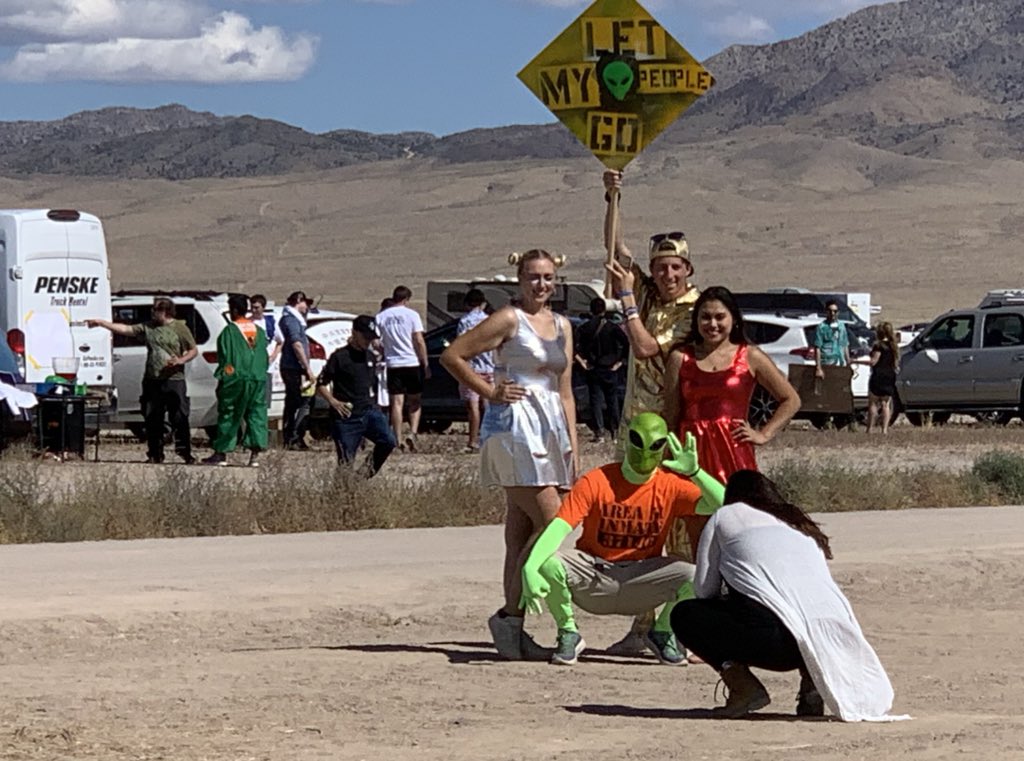 Особенность «штурма» в Неваде была в том, что до последнего момента никто не мог понять, сколько людей из двух миллионов желающих действительно приедут. Маленьким городам в окрестностях «Зоны 51» даже предрекали гуманитарную катастрофу, если туда заявится хотя бы 1% от участников встречи. Но в итоге всё обошлось.