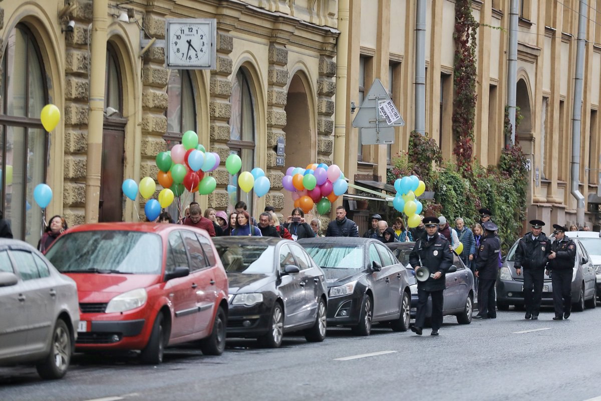 Акция в Санкт-Петербурге приурочена к Международному дню мира. Ее участники требуют остановить войну в Украине, Сирии, а также ограничить милитаризацию России. У здания Адмиралтейства, где некоторые участники акции остановились с плакатами, полицейские задержали трех человек.