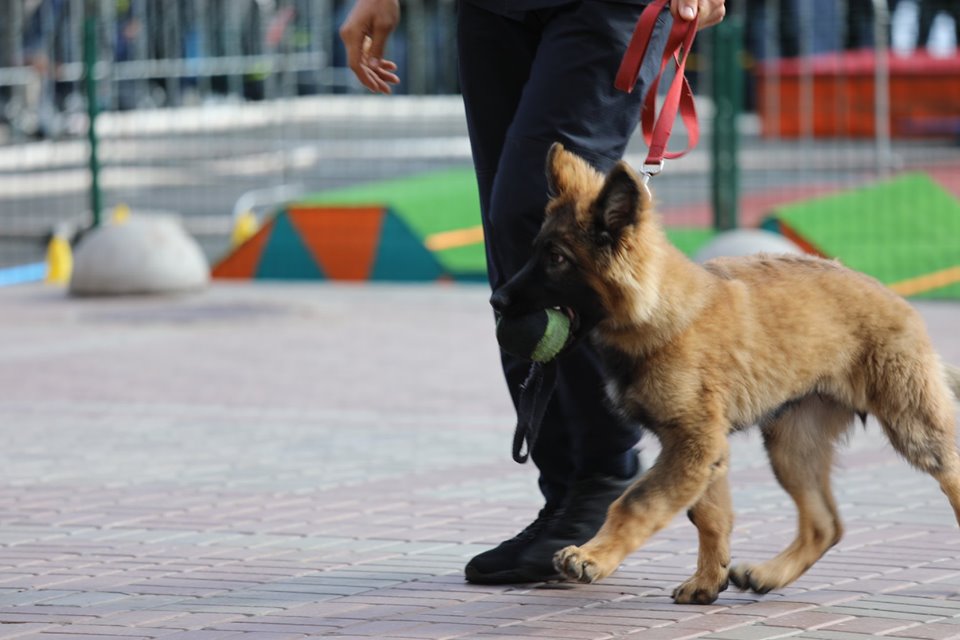 Цуценята німецької вівчарки Лорд, Ліка, Леді, Карма та малінуа Урі отримали від своїх наставників свій перший формений одяг та спеціальний тренувальний воль’єр.