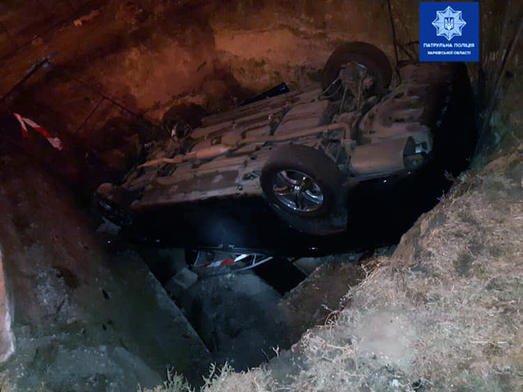 По информации патрульной полиции, водитель автомобиля "Toyota Camry" не выбрал безопасную скорость движения, не учел дорожной обстановки, не справился с управлением и совершил наезд на бордюр, пересек газон, вылетел на второстепенную дорогу и совершил столкновение с припаркованным автомобилем "Daewoo Lanos ", после чего продолжил инерционное движение, вновь совершил наезд на бордюрный камень, перевернулся и упал в яму, которая была огорожена металлическим забором.