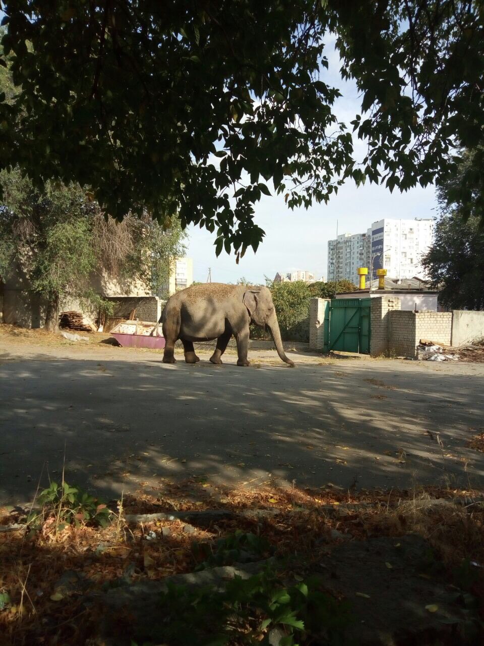 В районе Харьковского государственного цирка очевидцы обнаружили слона. Он прогуливался недалеко от детского сада № 253. Фото слона публикуют очевидцы в соцсетях.