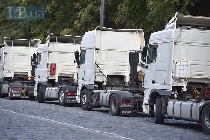 Чтобы привлечь внимание к своей проблеме, вдоль дороги на улице Грушевского выстроились несколько десятков фур без прицепов.