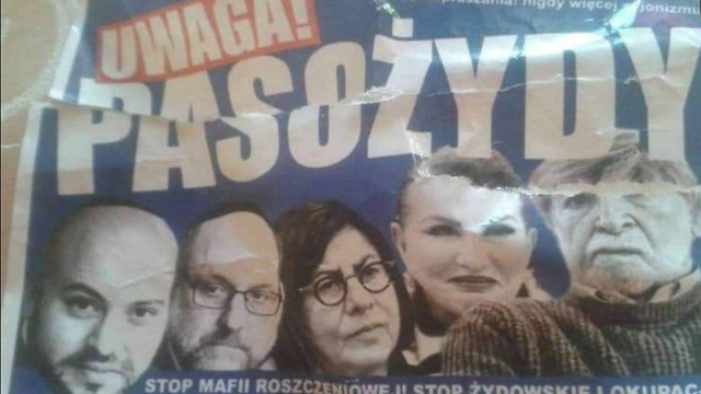 Наконец на плакате размещены фотографии бывшего посла Израиля в Польше Шеваха Вайса, нынешнего главы диппредставительства Анны Азари, посла США в Польше Жоржет Мосбахер, главного раввина Польши Михаэля Шудриха.