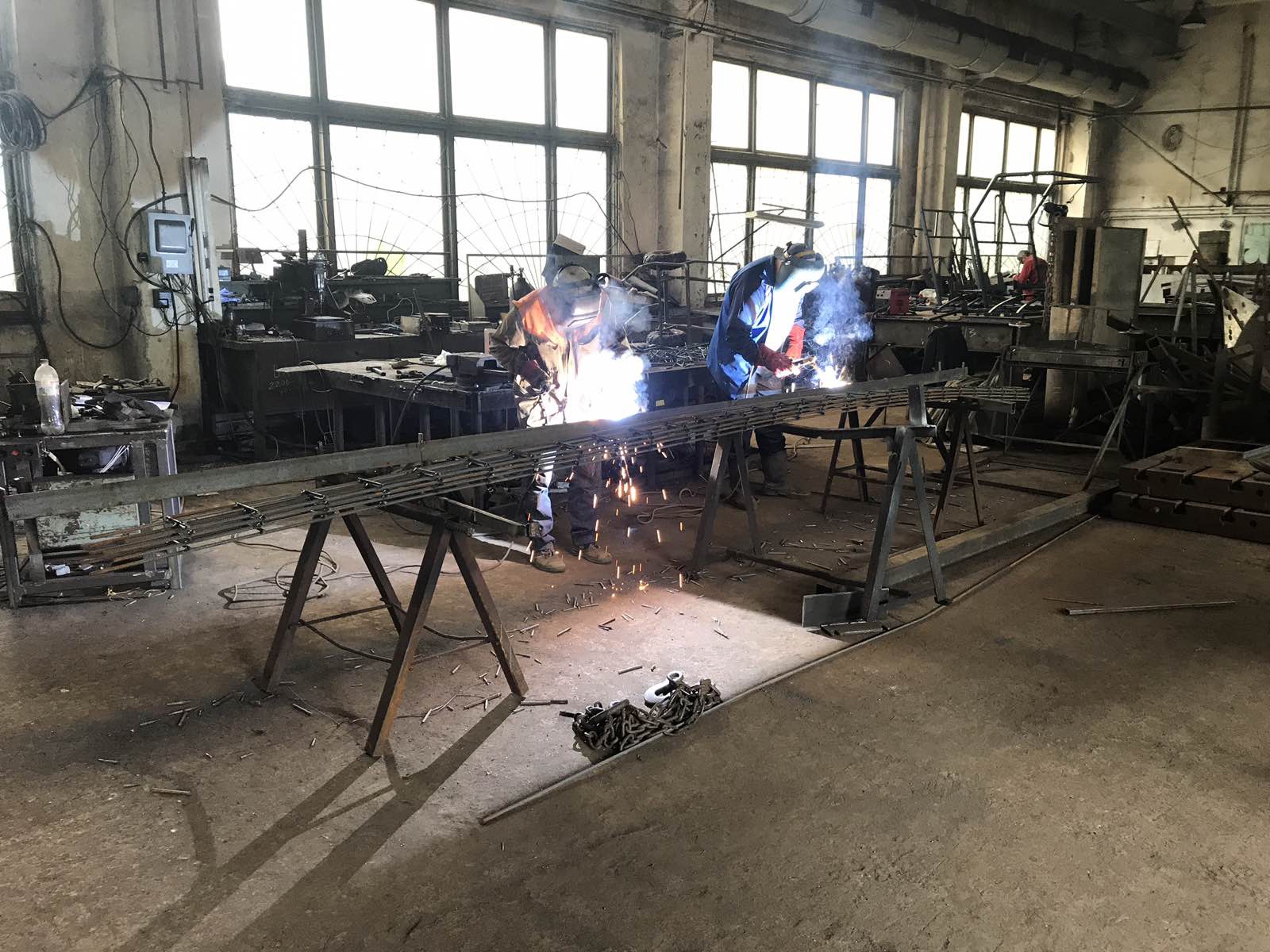 - В цеху выполняются работы по производству изделий из металла малых конструкций: ограждения под выносные кондиционеры, металлические детали для детских площадок, скамейки и прочее.