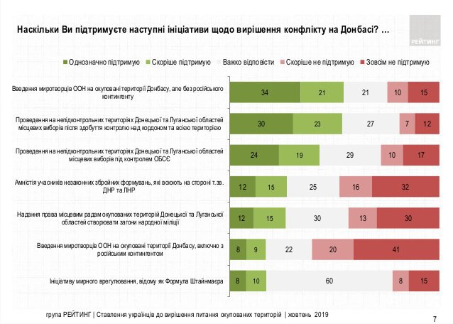 В то же время проведение на неподконтрольных территориях Донецкой и Луганской областей местных выборов после получения контроля над всей оккупированной территорией поддерживают 53%, не поддерживают - 19%.
