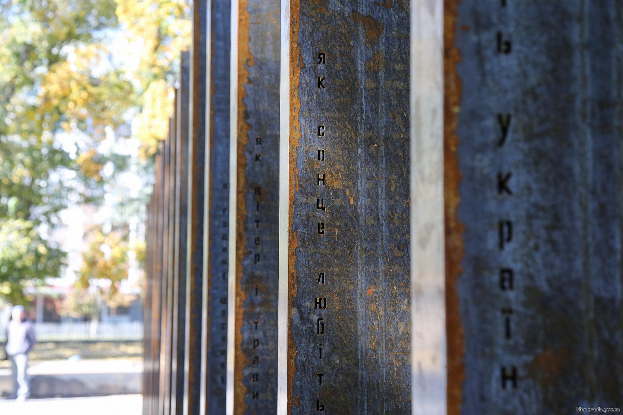 "Мы ставили задачу, чтобы монумент нес смысловую нагрузку, чтобы каждый, кто увидит его, чувствовал значимость событий, происходящих на востоке Украины, и вдохновлялся идеей того, что страну нужно защищать. Второй задачей было отойти от конкретных образов, а опираться на символизм. Основной элемент монумента - это куб, крепкая геометрическая фигура. Он символизирует Украину - целостное и мощное государство, которое, к сожалению, понесло тяжелые потери - и об этих потерях нам говорит та часть куба, которая отсутствует. Это потерянные жизни - уже около 16 тысяч граждан Украины погибли во время событий на востоке. И это потерянные территории. Но эти части все же остались с нами и вынесены на плац в виде 14 металлических стел. Такое количество символизирует 2014 год, когда началась АТО", – пояснил секретарь Совета ОО "Союз ветеранов АТО".