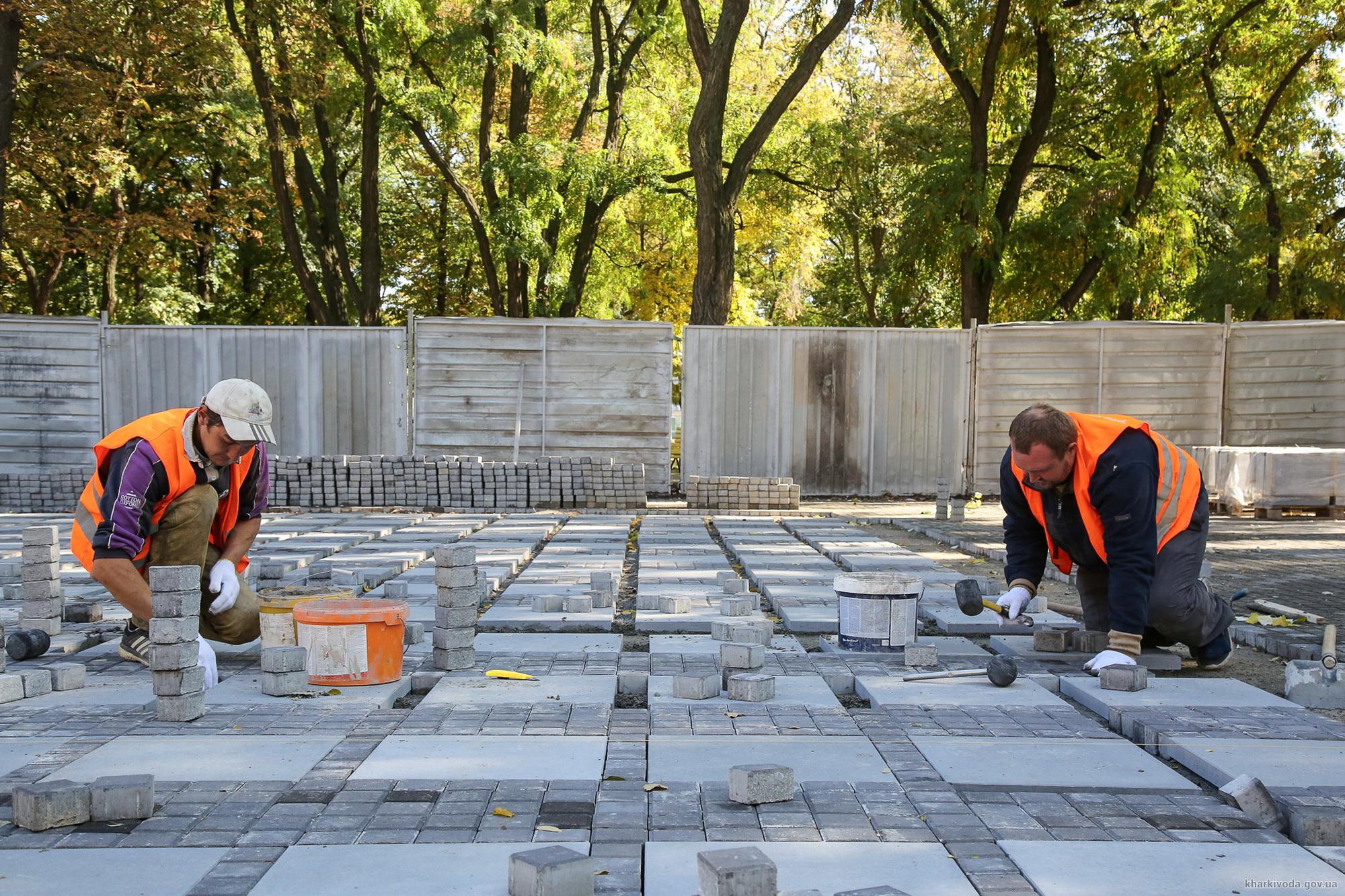 С работами, которые проходят на площади Защитников Украины, вместе с военными и ветеранами АТО (ООС) ознакомилась глава ХОГА Юлия Светличная.