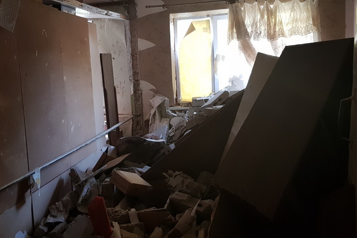 Взрывом повреждены входные и межкомнатные двери, окна и межкомнатные перегородки 6-ти комнат общежития.
