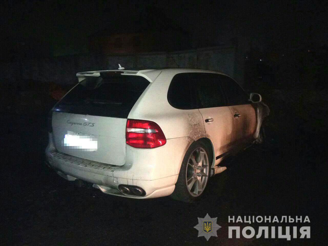 Неподалеку в Дубно на парковке неизвестные подожгли "Porsche Cayenne", принадлежащий 33-летней местной жительнице. Огонь ликвидировали, однако он повредил моторный отсек автомобиля, левое заднее крыло, переднюю часть и салон автомобиля.