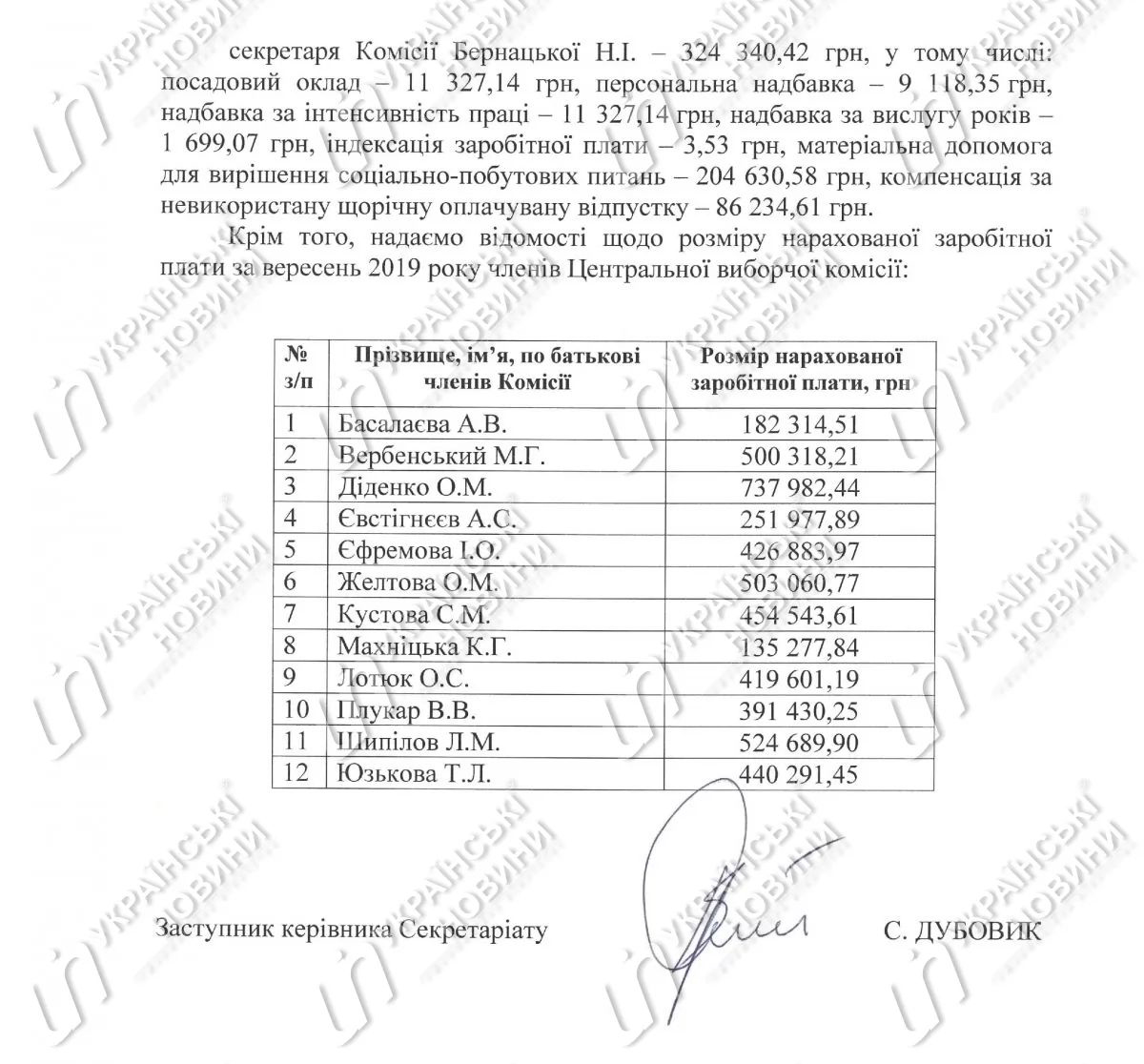 "Українські новини" получили ответ от секретариата Центризбиркома о зарплатах.