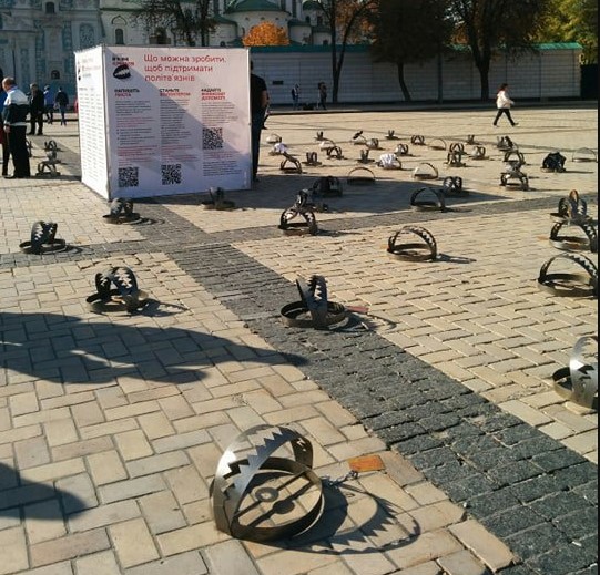 В Киеве прошла акция "Узники Кремля". Правозащитники установили на Софиевской площади 86 капканов - столько украинских граждан незаконно удерживают в тюрьмах России и оккупированного Крыма. Восемьдесят седьмым политзаключенным стал недавно арестованный в Крыму Олег Приходько pic.twitter.com/Q4XJMonUH5