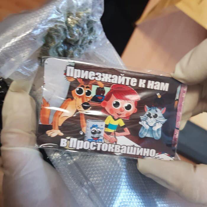 Посылки с веселыми вкладышами из советского мультфильма "Трое из Простоквашино" готовились к отправке в разные города Украины и содержали рекламные карточки и магниты с логотипами вышеупомянутого интернет-магазина.