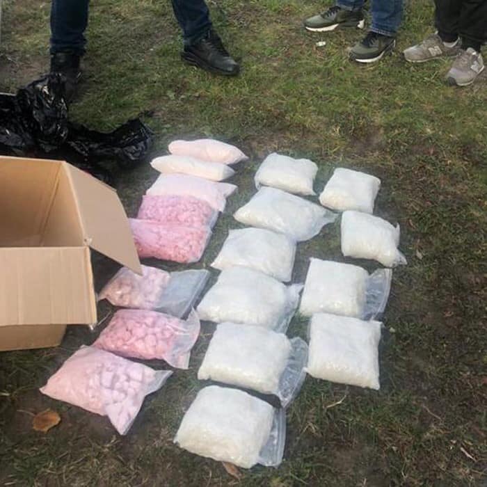 При осмотре почтового отправления внутри упаковки было выявлено 7 кг амфетамина и 10 кг психотропного вещества АЛЬФА ПВП (соли).